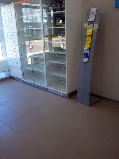 Сверхсовременные стеллажи и информ панели. Отличный евроремонт, большие и светлые окна.